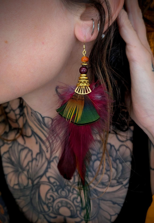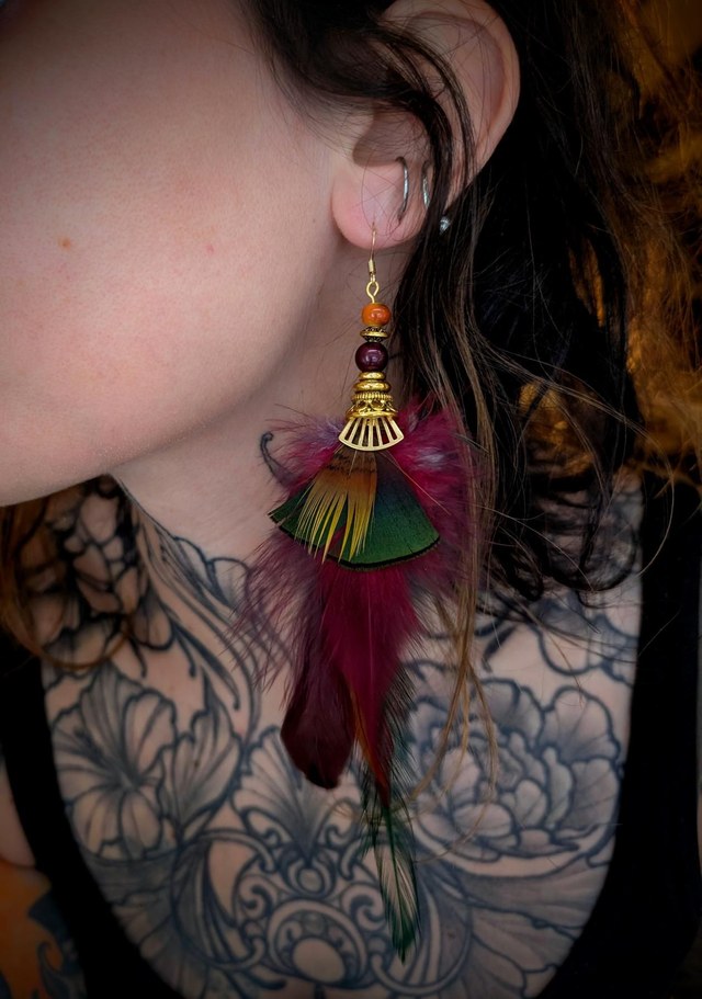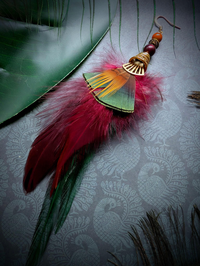 Ses plumes de feu et de mousse murmurent des secrets anciens au souffle de la brise.