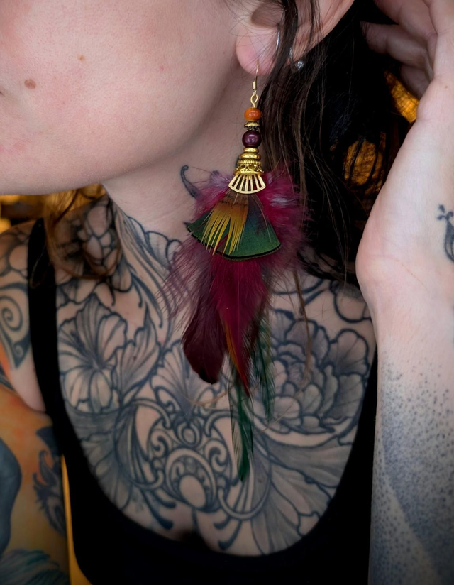 Éventail sacré des vents d’Amazonie, Arawa porte les couleurs du crépuscule sur la jungle.