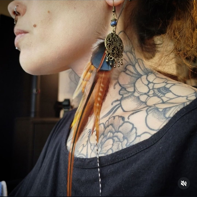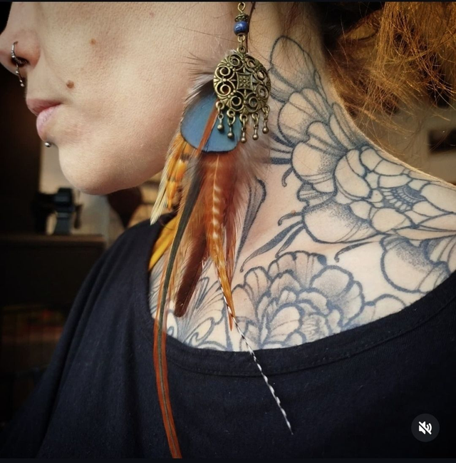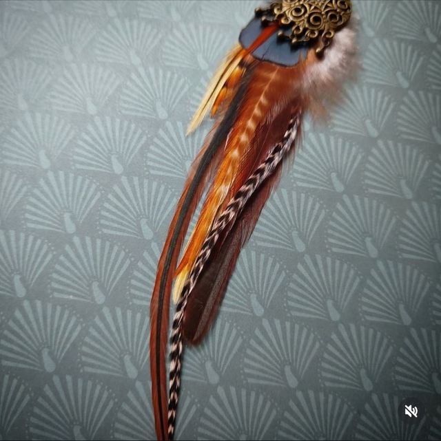 Solitaire composée de plumes de faisan et de coq, elle est agrémentée d'une breloque ethnique et d'une perle en céramique.