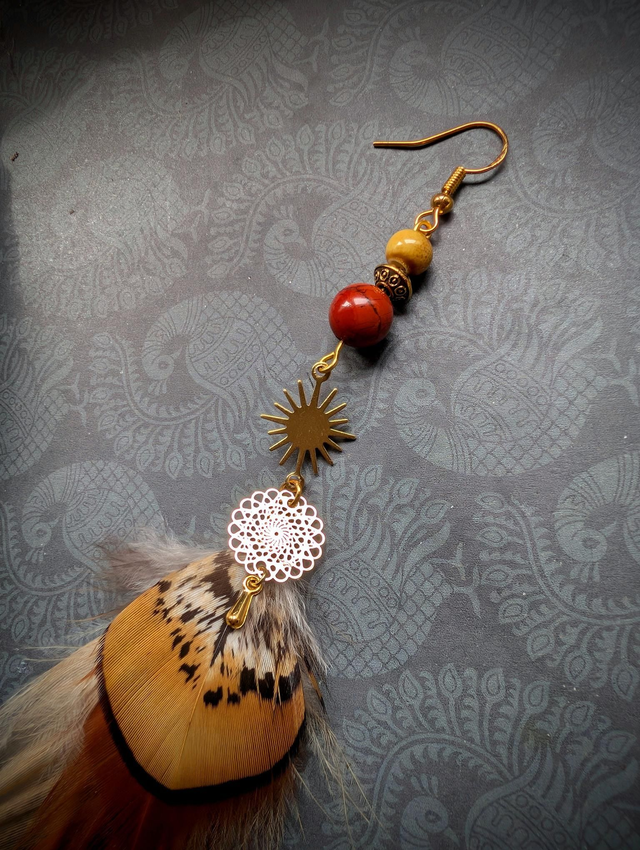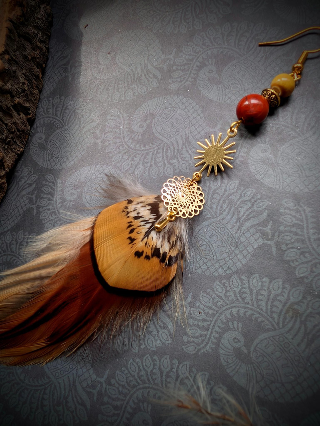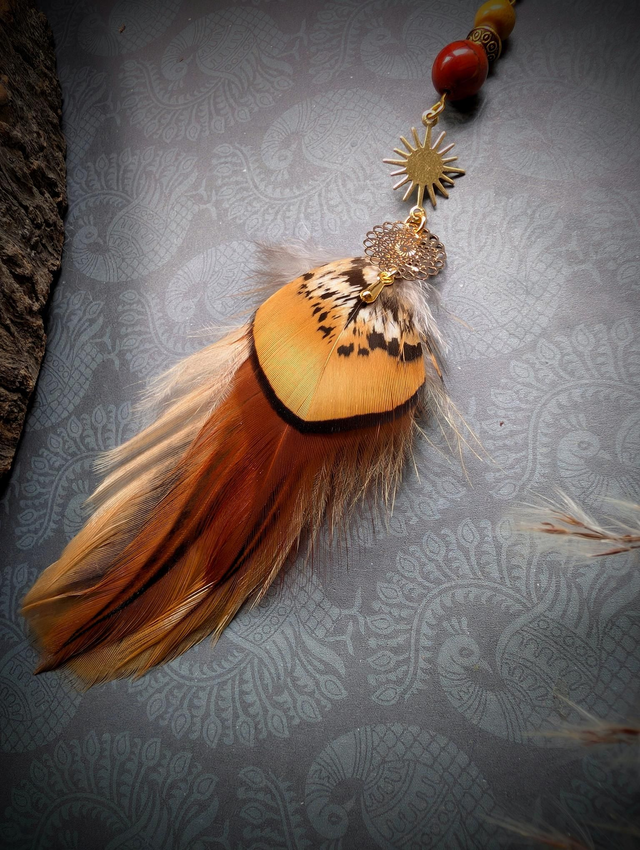 – Plumes de coq ou faisan : éclat naturel, lien entre ciel et terre