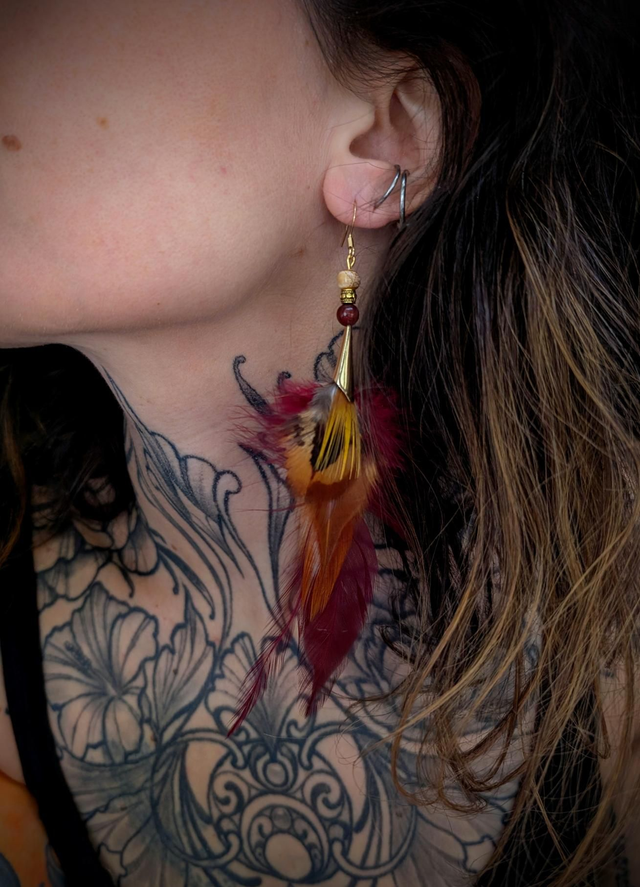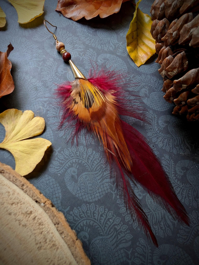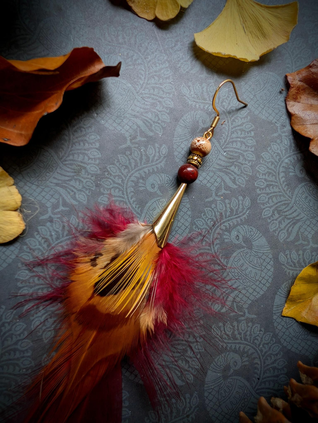 Mélange délicat de rouges profonds et de bruns veloutés, elle évoque la danse lente des feuilles portées par le vent. Une création douce, féminine et vibrante.