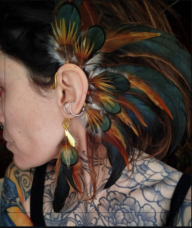 Apportez une touche d’originalité à votre style avec cette boucle Earcuff conçue à la main dans un esprit bohème ethnique. Composée de plumes naturelles, elle allie légèreté et élégance pour un rendu à la fois sauvage et raffiné.