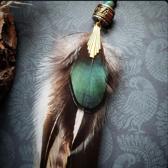 Matériaux : Plumes naturelles, perles,
