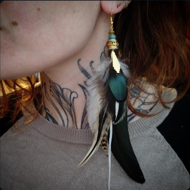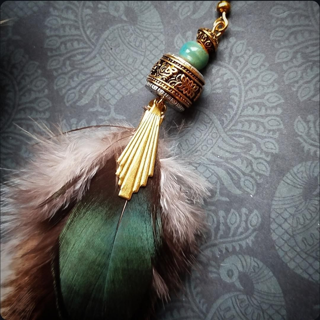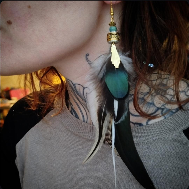 Apportez une touche d’originalité à votre style avec cette boucle d’oreille solitaire, conçue à la main dans un esprit tibetain. Composée de plumes naturelles, elle allie légèreté et élégance pour un rendu à la fois ethnique et raffiné.