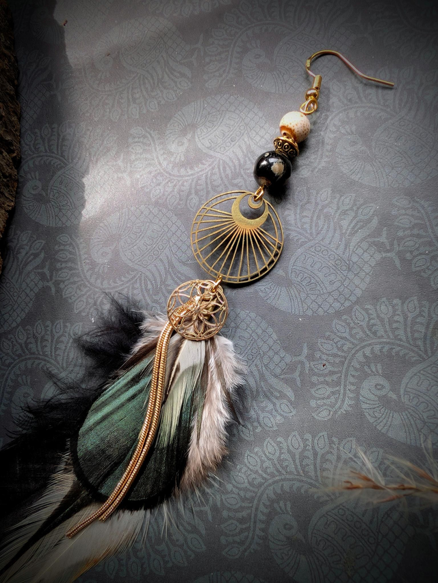Au cœur de la boucle, une perle d’agate veille silencieusement. Pierre d’ancrage et de sagesse, elle renforce l’intuition, protège les pensées, et aide à capter les murmures subtils de l’inv