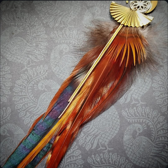 Matériaux : Plumes naturelles, perles,