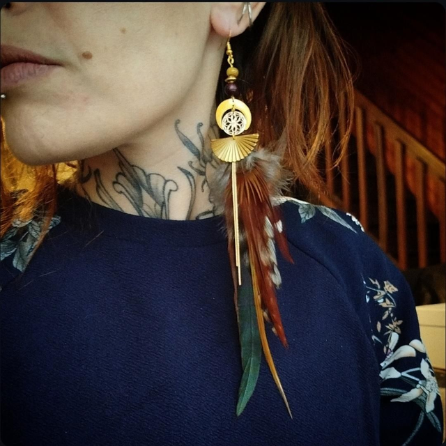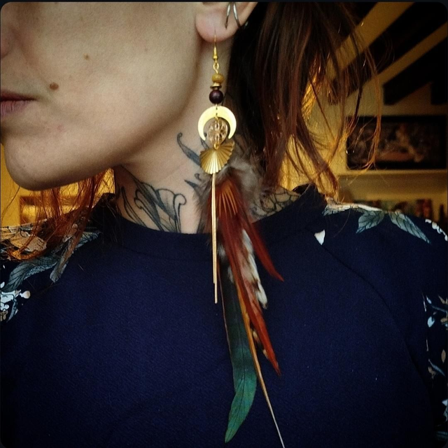 Apportez une touche d’originalité à votre style avec cette boucle d’oreille solitaire, conçue à la main dans un esprit bohème ethnique. Composée de plumes naturelles, elle allie légèreté et élégance pour un rendu à la fois sauvage et raffiné.
