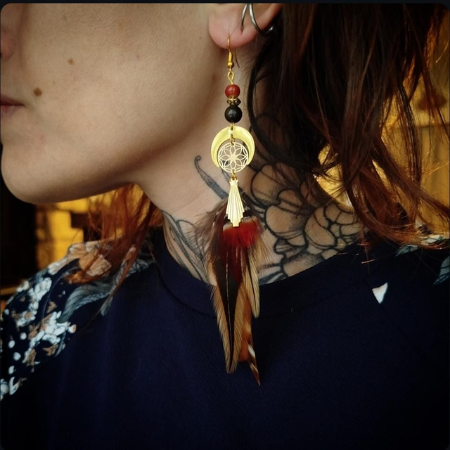 Apportez une touche d’originalité à votre style avec cette boucle d’oreille solitaire, conçue à la main dans un esprit bohème ethnique. Composée de plumes naturelles, elle allie légèreté et élégance pour un rendu à la fois sauvage et raffiné.