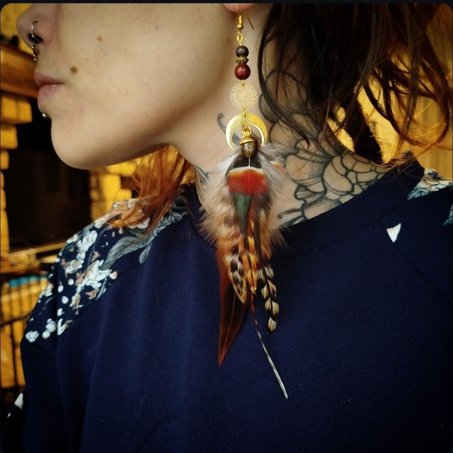 Apportez une touche d’originalité à votre style avec cette boucle d’oreille solitaire, conçue à la main dans un esprit bohème ethnique. Composée de plumes naturelles, elle allie légèreté et élégance pour un rendu à la fois sauvage et raffiné.