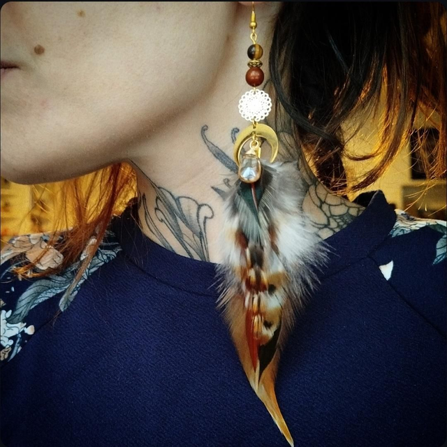 Apportez une touche d’originalité à votre style avec cette boucle d’oreille solitaire, conçue à la main dans un esprit bohème ethnique. Composée de plumes naturelles, elle allie légèreté et élégance pour un rendu à la fois sauvage et raffiné.