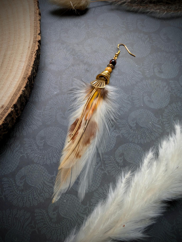 Légère comme un souffle d’air froid au matin, Sakari unit des plumes ivoire à des tons boisés et dorés.